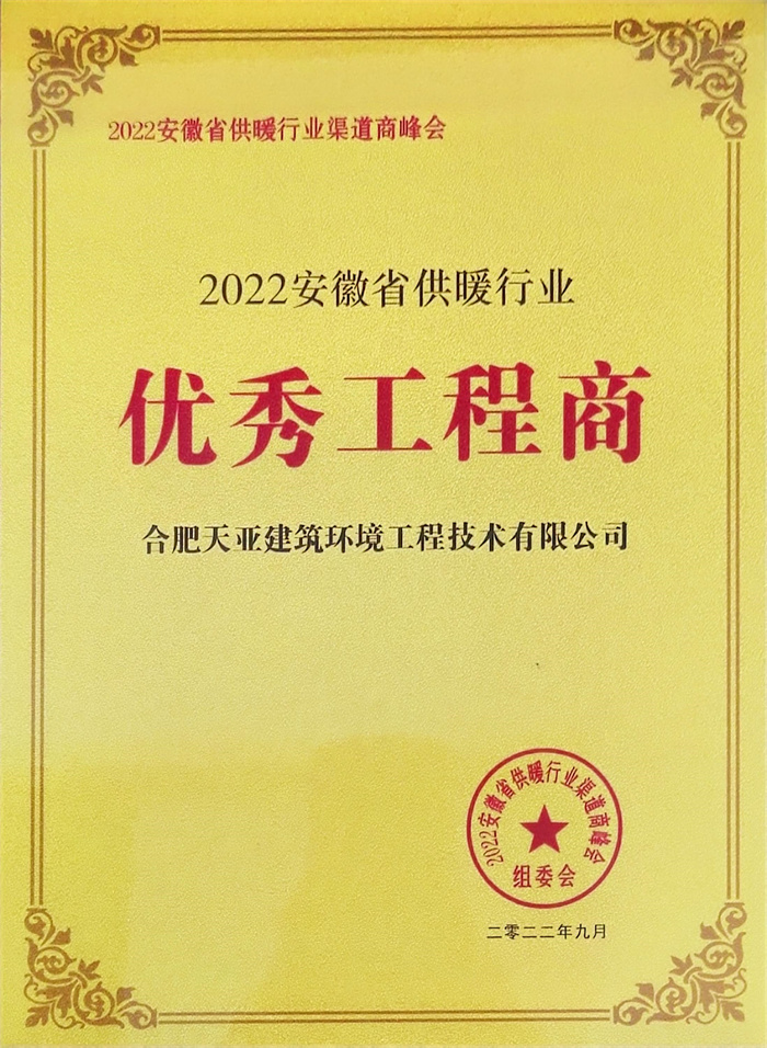 2022年安徽省供暖行業優秀工程商